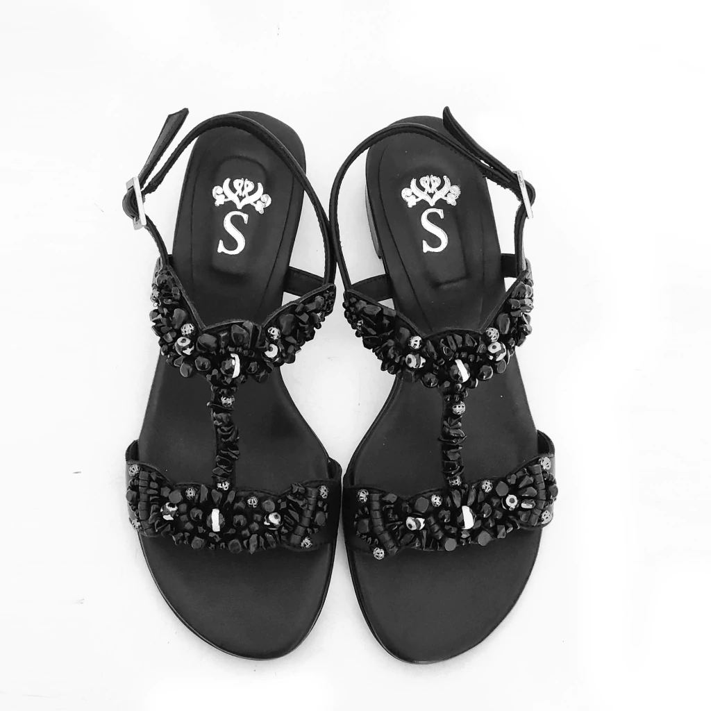 El modelo Mónaco, es la expresión del uno a uno, en la que cada sandalia se borda a mano, piedra por piedra, aplique por aplique. Es un proceso lento y laborioso realizado en detalle. Desde la selección de los materiales hasta el bordado, es un modelo en el que cada par de sandalias puede llevar hasta dos días de trabajo.
