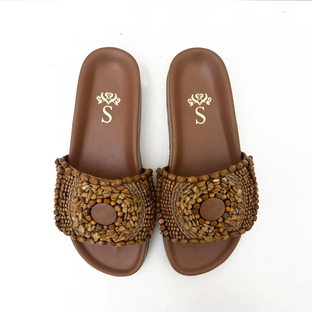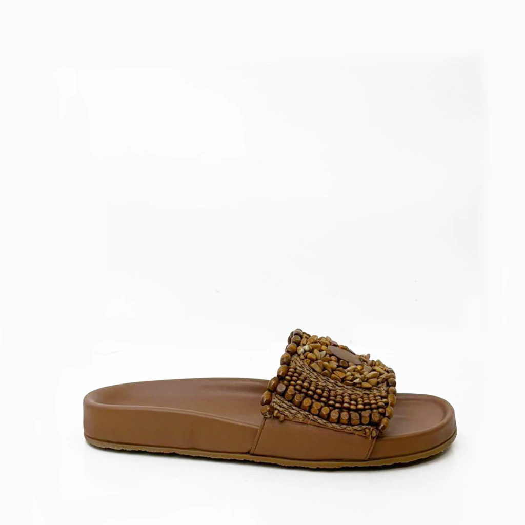 Sandalia Delhi de confeccionada en cuero, bordada completamente a mano. Cada detalle refleja la exclusividad y el carácter único de nuestras ediciones limitadas.